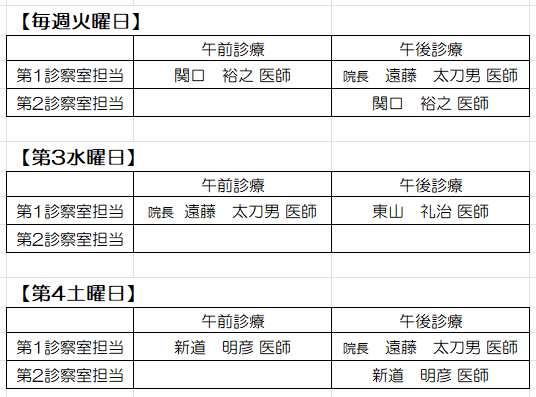 令和8年4月より遠藤院長の手術執刀のため一般外来診療担当医は以下のとおりとなります。